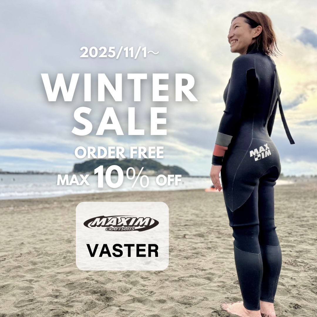 期間中(11/1~)にウェットスーツをオーダーしていただくと、MAXIM.VASTERのウェットスーツが最大10%OFF!!